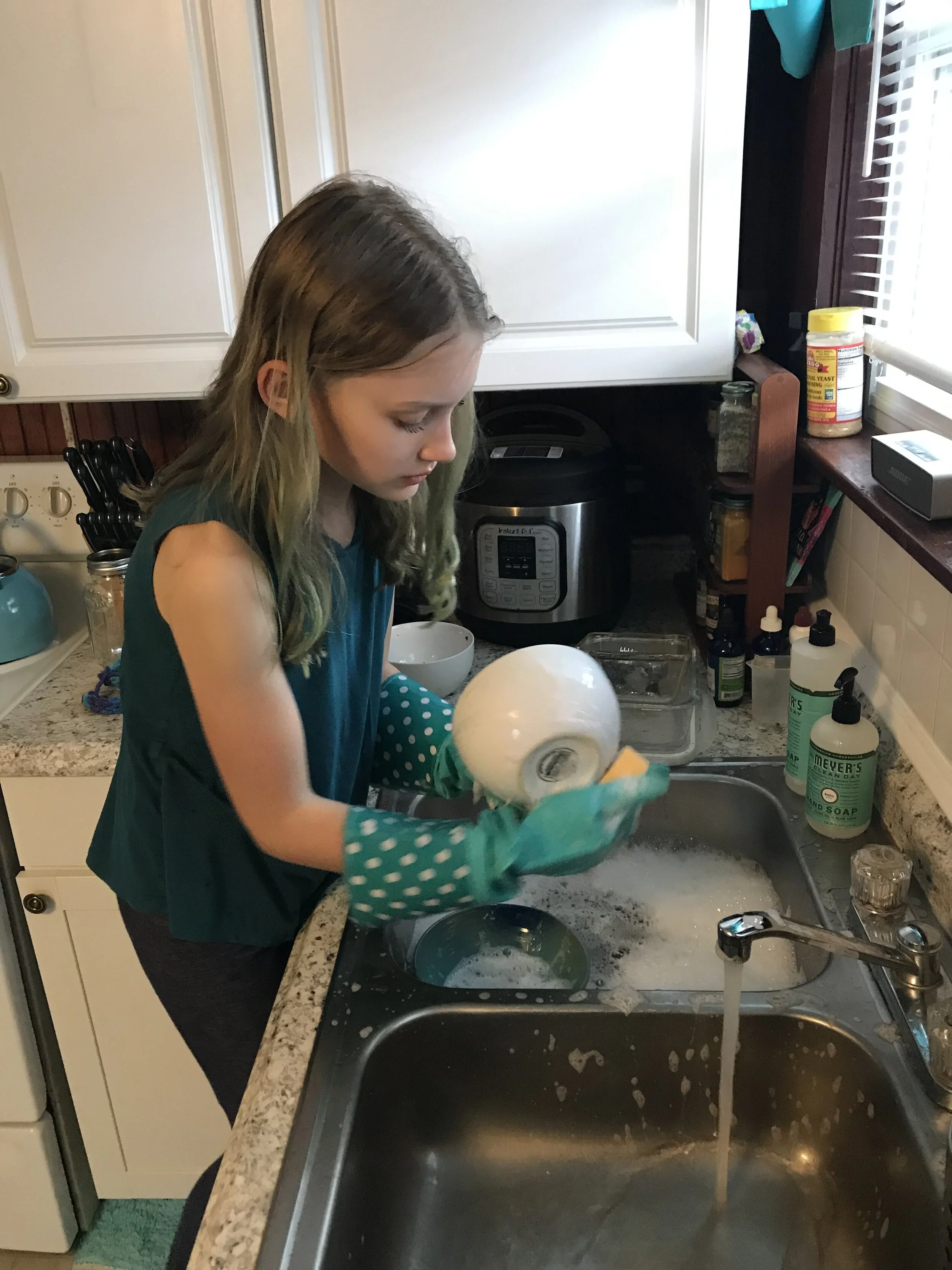 Looking in the kitchen window.